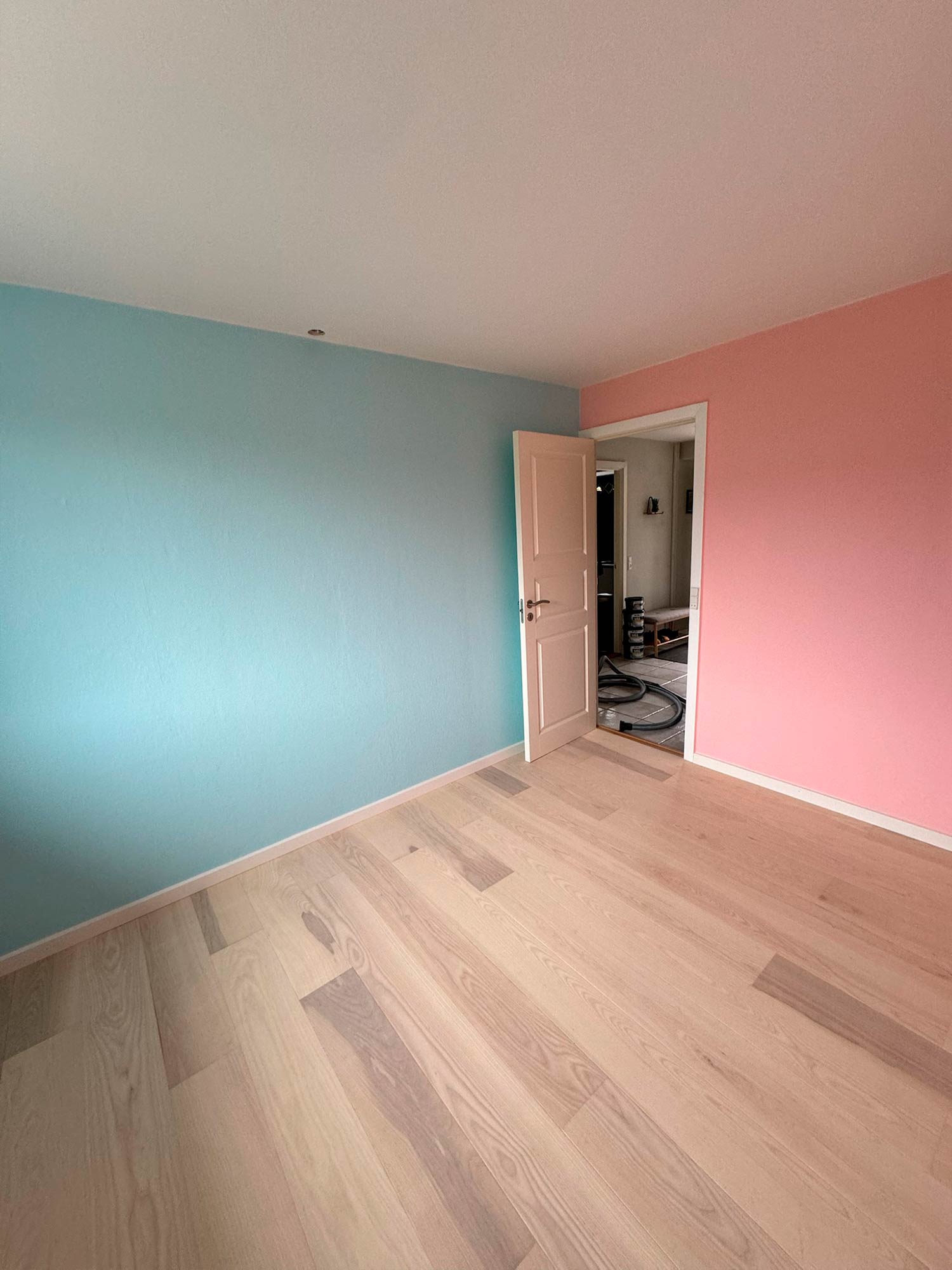 Kunden ønskede et nyt gulv i hele huset. For os er det vigtigt først at afklare kundens forventninger, så vi sammen kan finde den bedste løsning. Her stod det klart, at de drømte om et lyst, slidstærkt gulv i træ – og at det skulle kombineres med gulvvarme for ekstra komfort.
