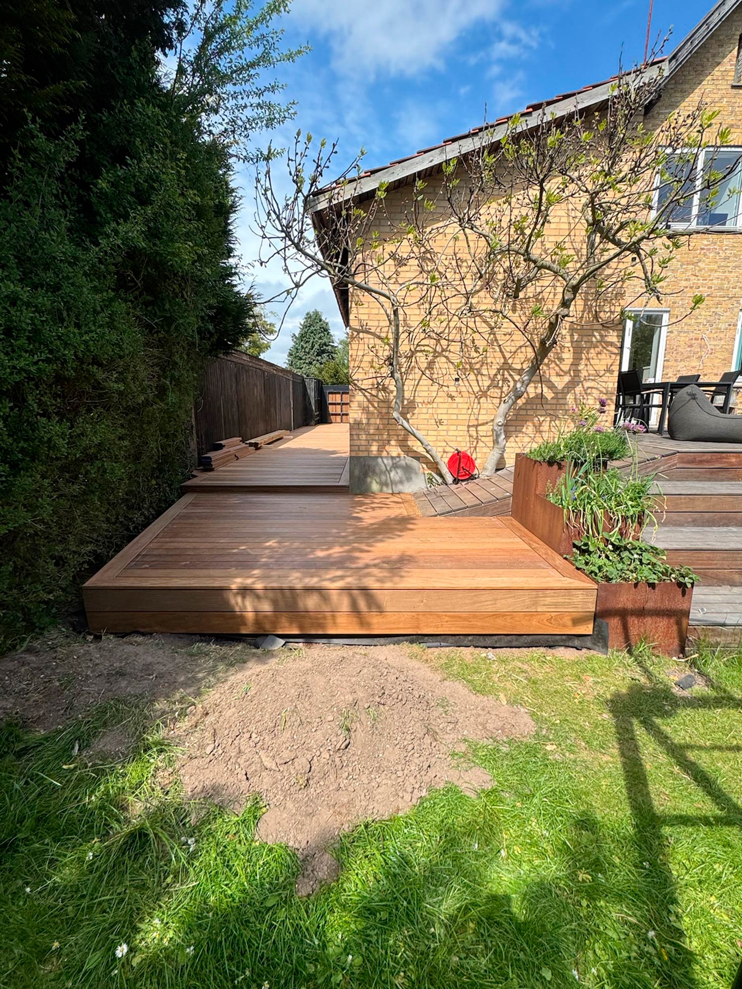 Vi designede en skræddersyet træterrasse ud fra kundens ønsker. Sammen udvalgte vi den rette træsort og blev enige om at bygge cykelskuret i samme materiale for et ensartet udtryk. Terrassen stod færdig på blot én måned, mens cykelskuret blev afsluttet halvanden måned efter projektstart.